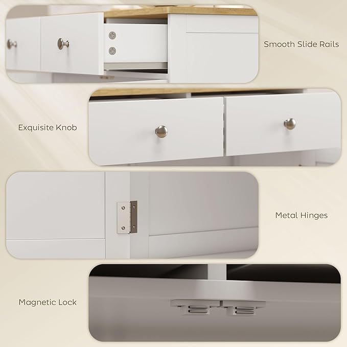 - Practical Workspace: With a natural rubber wood countertop, our kitchen cabinet offers a solid and easy-to-clean workspace that's great for all kinds of projects.