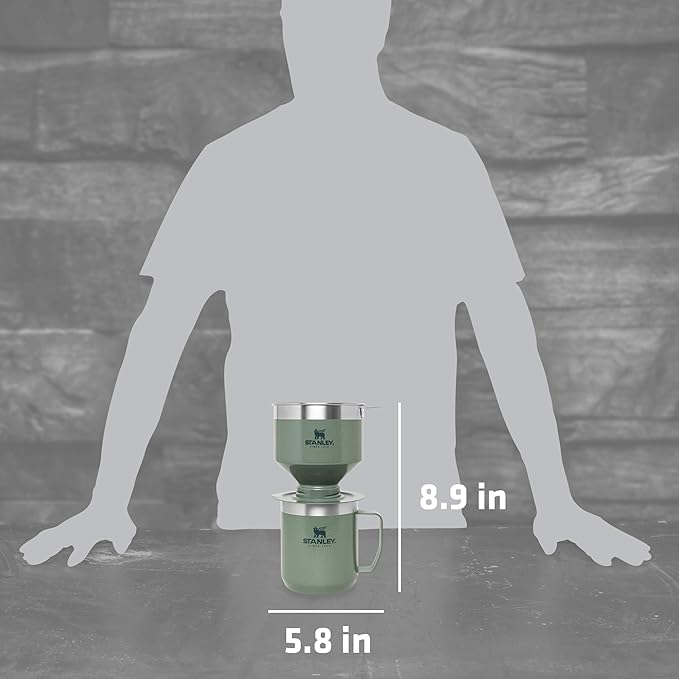 Stanley Perfect Brew Pour Over Set | 12 oz Camp Mug with Lid Included | Drip Coffee Maker with Reusable Filter | Insulated Stainless Steel | BPA-Free | Hammertone Green