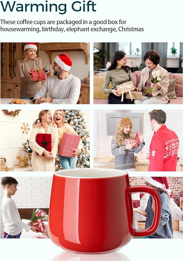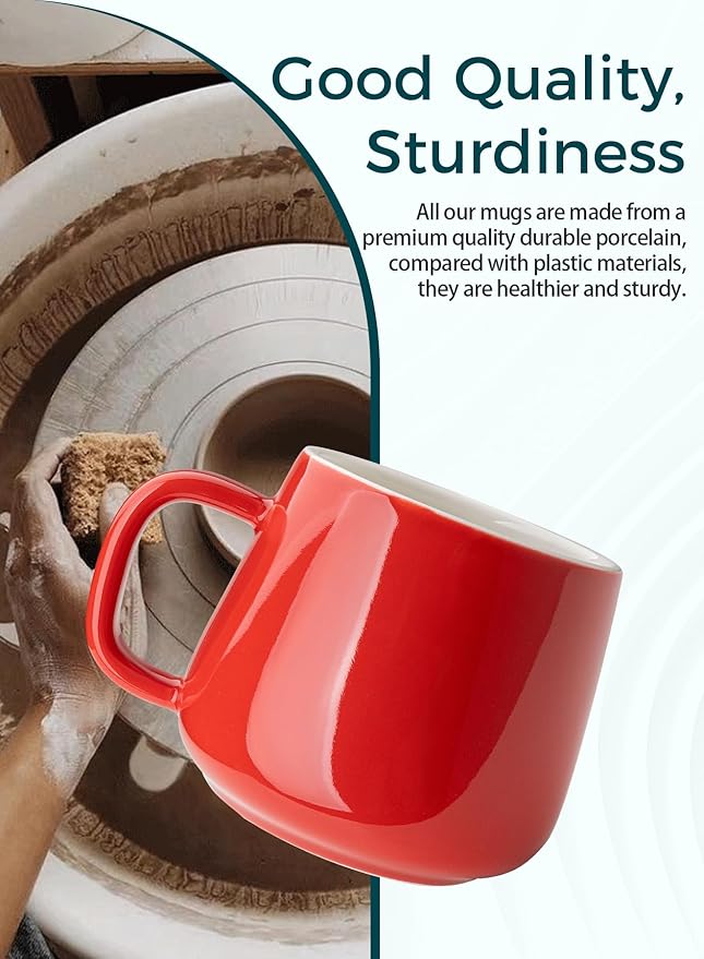 Teocera Ceramic Coffee Mug Set of 4-12 oz Coffee Mugs with Large Handles for Hot or Cold Drinks Like Latte, Cocoa, Tea or Juice - Smooth Ceramic, Dishwasher Safe, Red