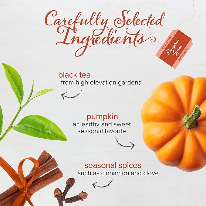 - Rich and Spicy: 108 caffeine tea bags with the rich, inviting aroma of freshly baked pumpkin pie for a holiday treat that makes for the perfect holiday gift