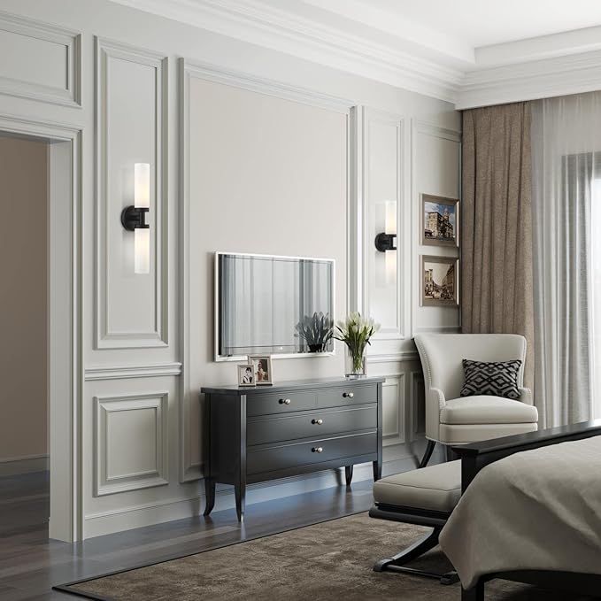 Livex Lighting 10104-04 Aero Collection ADA 2-Light Bathroom Vanity Light with Satin Opal White Glass Cylinder Shades, Black, 18 x 4.25