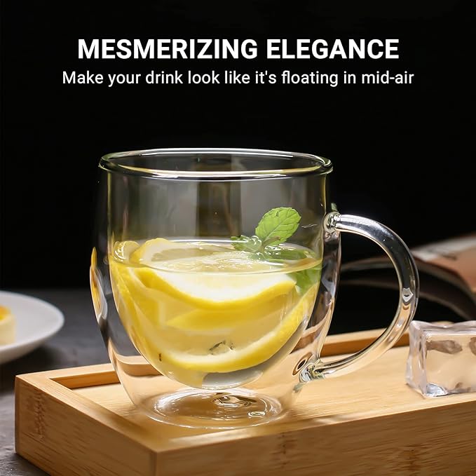 - ★ ATTRACTIVE APPEARANCE ★ - Elegant shape and sleek looking. These glass espresso cups are clear to enjoy seeing the striated layers of froth, coffee, and foam. The double wall design makes the drink hover in the air. They makes for a very hospitable display for you and your guests in the morning or at the end of a meal.