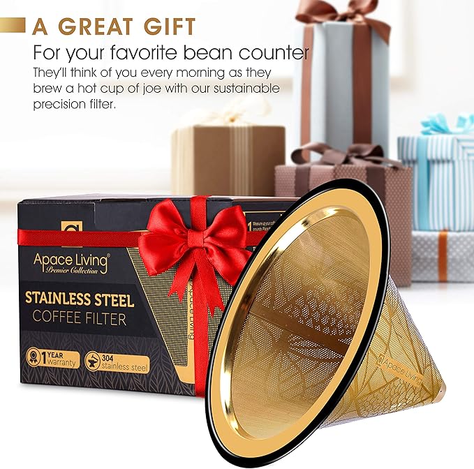 - ☕BEAUTIFULLY DESIGNED POUR OVER COFFEE FILTER: The mesh of our filters have unique designs to complement your coffee maker. Stored together, the two become a statement piece for your kitchen.