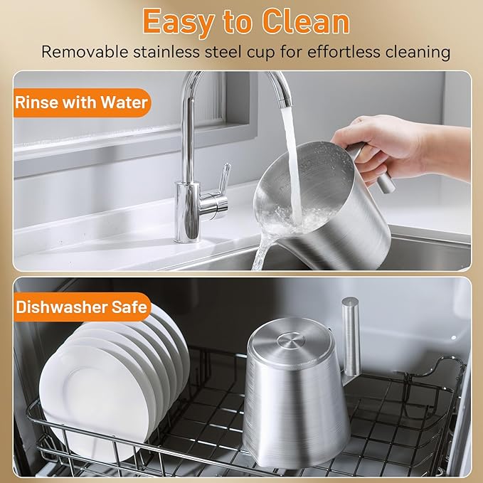 - Easy to Use & Clean: Crafted from food-grade stainless steel with a well-designed spout, it ensures smooth pouring without splashing. Plus, the detachable milk jug is dishwasher-safe for hassle-free cleaning