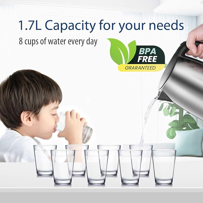 - FAST BOIL: The 1500W heating power provides fast and efficient boiling. This electric hot water kettle has concealed heating elements, making it quick and safe to use.
