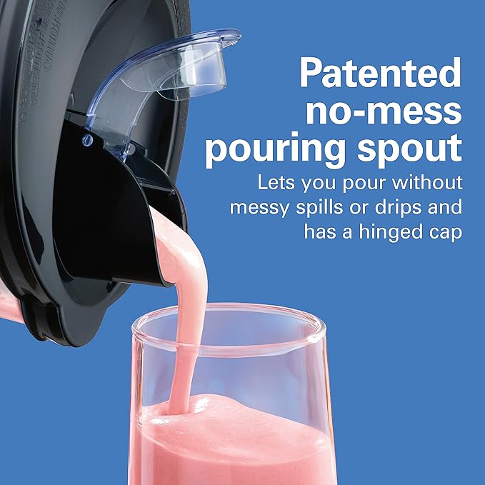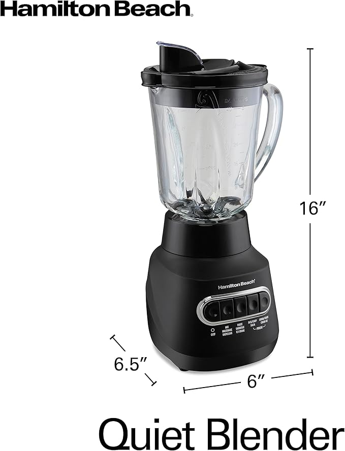 Hamilton Beach Wave Action Blender for Smoothies, Stainless Steel Ice Sabre Blades, 40oz Glass Jar, 800 Watts, Quiet Design, Black (58175)