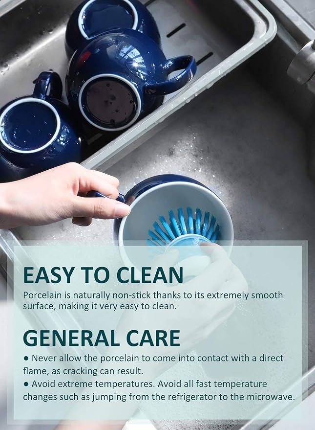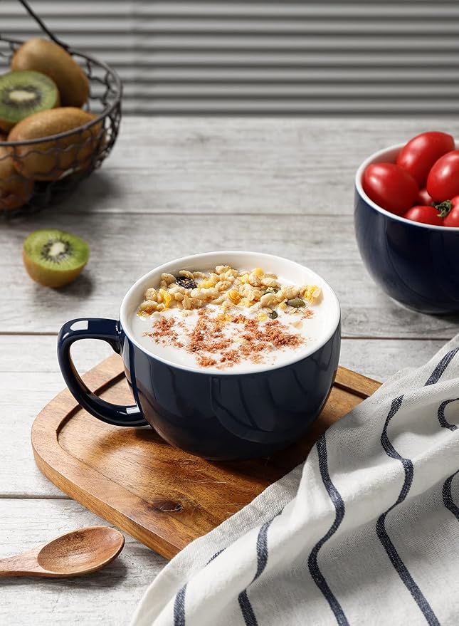 Teocera 16oz Large Coffee Mugs Set of 4 - Thick White Porcelain Cups for Cappuccino, Latte, Tea & Hot Chocolate - Dishwasher Safe Ceramic with Comfort Grip Handles(Navy
