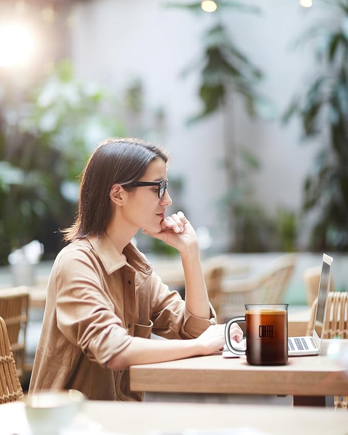 - HEALTHY AND ENVIRONMENTALLY FRIENDLY - Whether at home or in the office,this borosilicate coffee glass has super chemical stability and strong resistance to acids, alkalis and preservatives,so you don't have to worry about harmful chemicals getting into your stomach by mistake.Therefore,this healthy and environmentally friendly transparent coffee cup will become the first choice for coffee lovers.