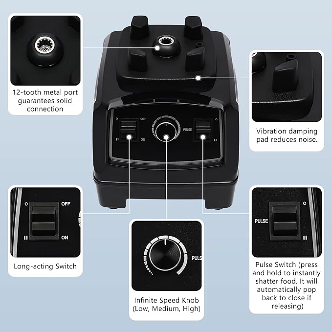 - 【Safety】This smoothie blender is equipped with overload protection device and motor overheat protection to ensure safe use.