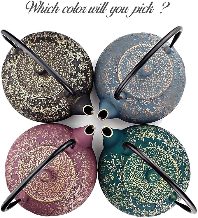 - Crafted by Hand from Start to Finish: Our black tea pot is more than just a kettle; it's a handcrafted piece of art; Each black tea kettle is molded from heavy-duty iron, carefully hand-painted, and beautifully engraved with multiple leaves, symbolizing health and happy relationships