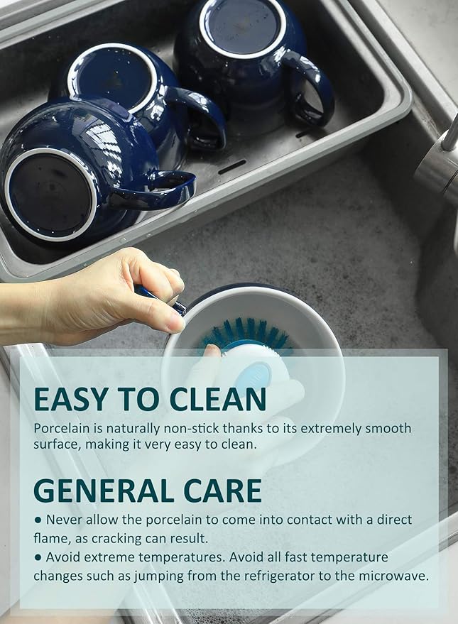 - Decent Weight, Long-lasting Porcelain - These large mugs with handle are great for office use and home use, as they work well in both cold and hot temperatures. The sturdy porcelain is oven, microwave, freezer and dishwasher safe.