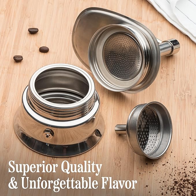 - ITALIAN MADE - Constructed from stainless steel, the mini coffee maker is crafted in Italy, renowned for its coffee culture and espresso traditions to give you the ultimate combination of creativity and innovation for the best tasting coffee in minutes.