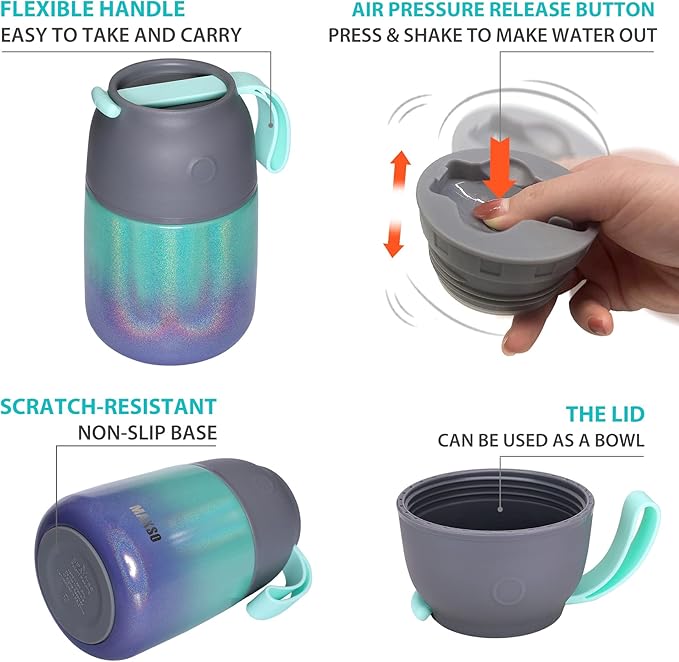 - [LEAK-PROOF ] Confidently pack our sweat-proof and leak-proof food jars in your lunch bag. No need to worry about leak mess. Air pressure release design makes it easy to open