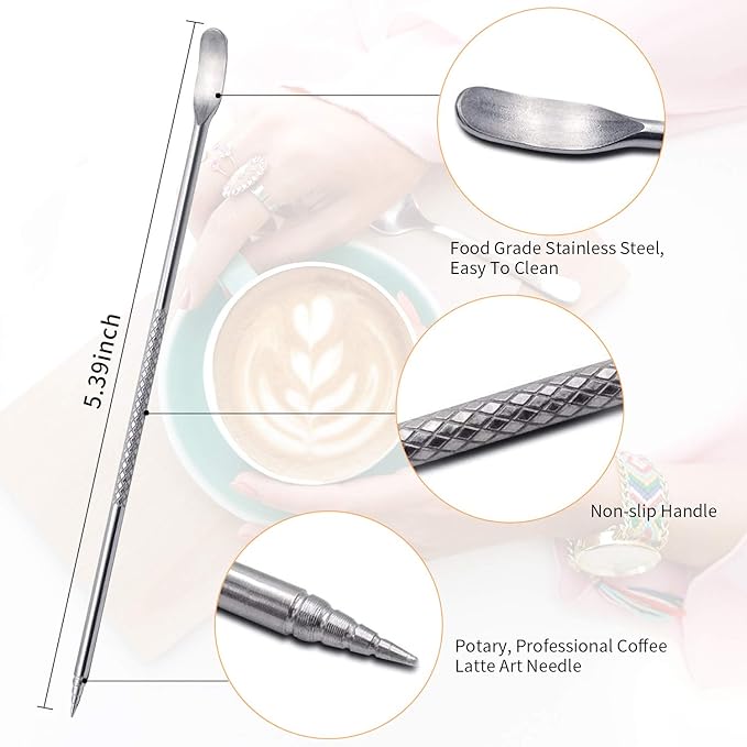 - ☕️ STURDY & TOP QUALITY STAINLESS STEEL: The Milk Frothing Pitcher and Latte Art Pen are made of #304 STAINLESS STEEL. Well-made, rust-proof, stain-proof, heat-proof, and nontoxic. Dishwasher-safe, easy to clean and use.