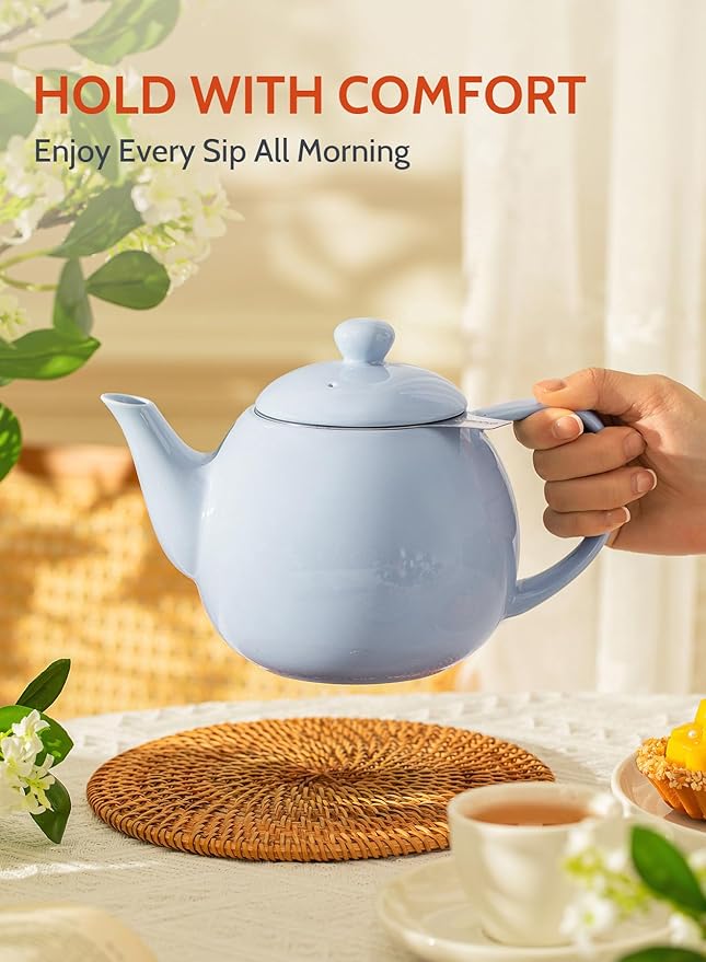 Sweese Teapot, Porcelain Tea Pot with Stainless Steel Infuser, Blooming & Loose Leaf Teapot - 27ounce, Lilac