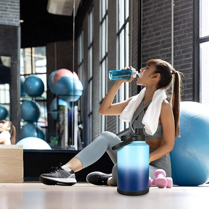 - Practical and versatile: This water flask has a wide mouth for easy refilling and a leak-proof lid that prevents any spills. Also, the water gallon bottle is very easy to carry and handle thanks to its practical handle. This makes it suitable for outdoor activities, camping, sports, and so much more.