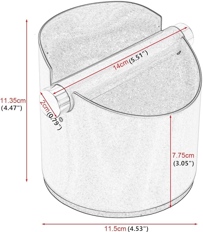 - Material: The knock box body was made of stainless steel , durable in use and not deformed. The knock bar was made of stainless steel and wrapped in rubber , won't dent or scratch your portafilter and helps eliminate spills , it keeps the portafilter safe. Rubber ring on the bottom of the coffee knock box will keep it from shifting during use, also to reduce noise, prevents sliding and won't scratch kitchen countertops