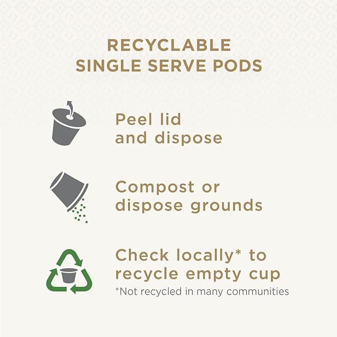 - Recyclable: Peet's Single Serve Coffee Pods are fully recyclable - peel, compost or dispose grounds & recycle. Check locally, not recycled in many communities