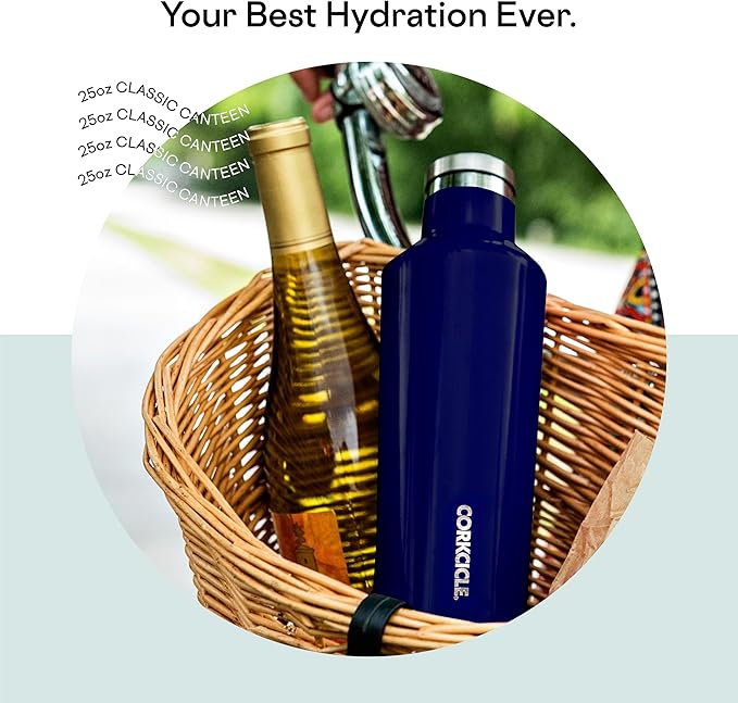 Corkcicle Classic Canteen Insulated Tumbler, Gloss Powder Blue, 25 oz – Reusable Water Bottle Keeps Beverages Cold for 25 Hours & Hot 12 Hours – Cupholder Friendly Tumbler with Screw-On Cap