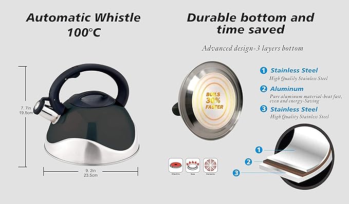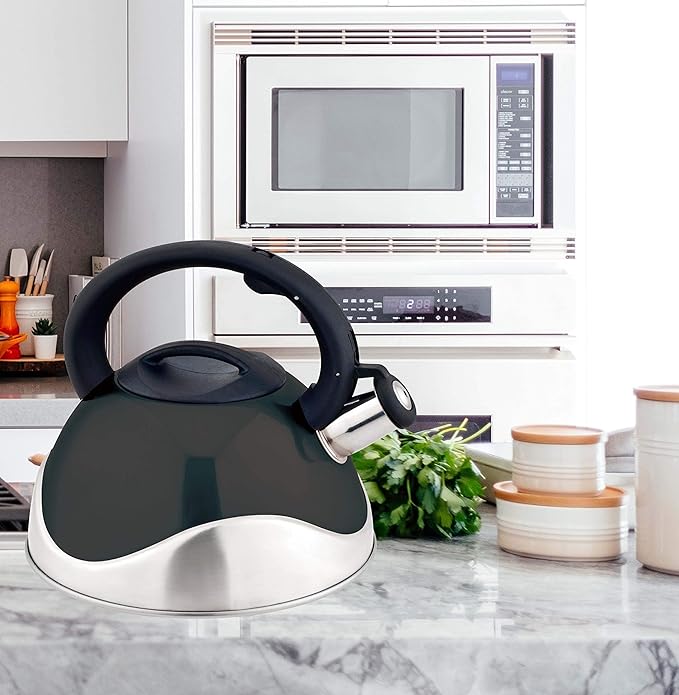 J&V TEXTILES Stainless Steel Whistling Tea Kettle, 3-Quart (Black)*