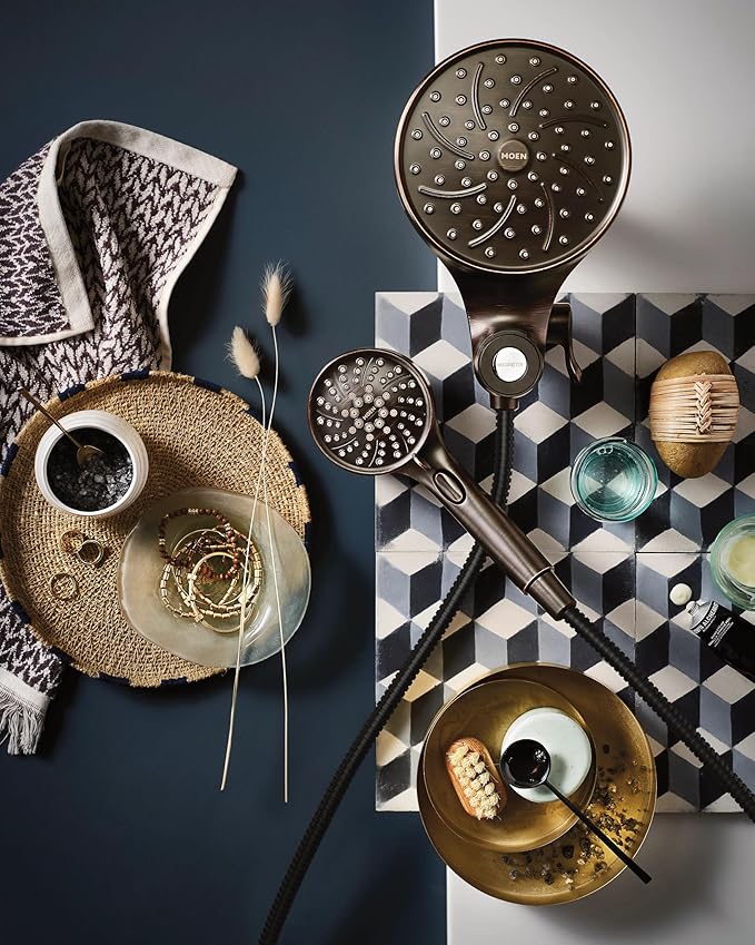 Moen Engage Magnetix Mediterranean Bronze 3.5-Inch Six-Function Detachable Handheld Showerhead with Magnetic Docking System, 26100BRB