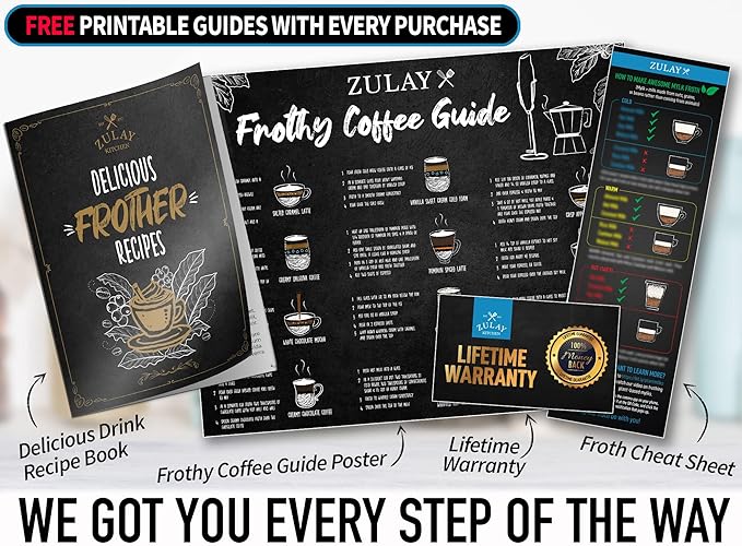 - 🥛No Hassle, Zulay Guarantee: We love and take pride in our milk frother and we back this up with a lifetime guarantee. Have the confidence that this frother will last. If there are ever any issues, just contact us and we will make it right. Order now and be assured that this product will live up to your expectations, guaranteed. If it does not make your foam exactly how you want it, we got you covered.