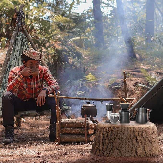 SOTECH Pour Over Coffee Maker Set All in 1 Coffee Kits- 304 Stainless Steel Kettle with Thermometer Coffee Grinder Coffee Dripper & Server of Portable Travel Bag For Outdoor Camping