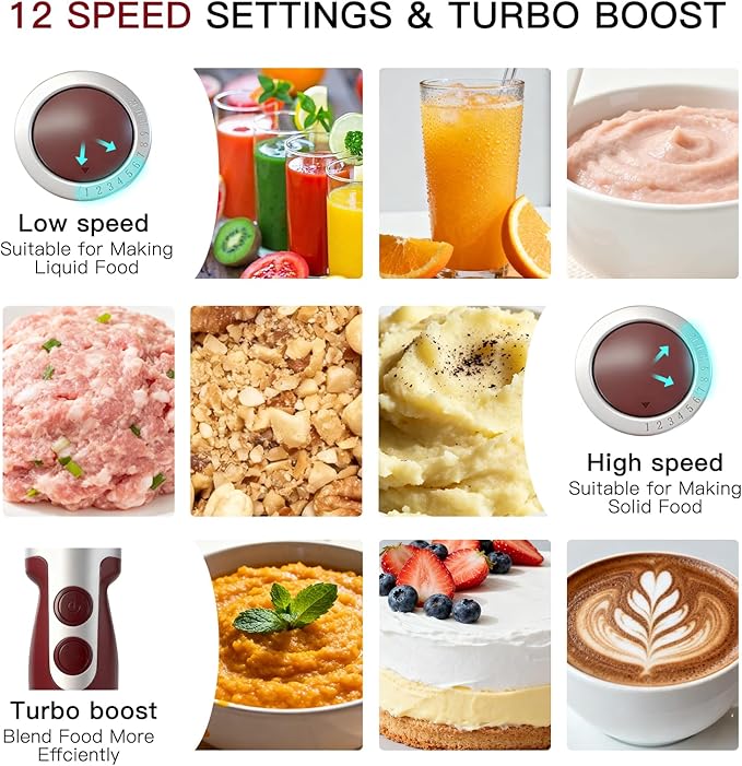 - 💞12 Speeds + TURBO Boost 💞: This blender has the right speed for all of your blending tasks. You can slowly increase the speed to get the optimal speed without splashing. Use TURBO mode to easily blend tough ingredients.