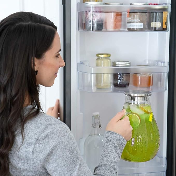 - CONSTRUCTED OF BOROSILICATE GLASS - STOVETOP SAFE: The absence of lead guarantees 100-percent recyclable products, superior resistant to use, the pitcher is thicker than other brands in the market and has been double-annealed to give it extra durability