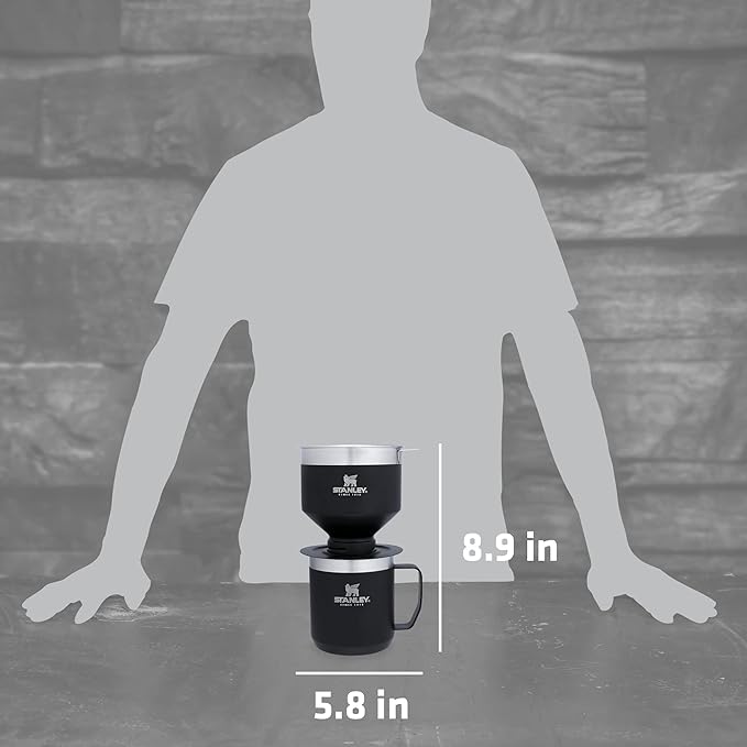 Stanley Perfect Brew Pour Over Set | 12 oz Camp Mug with Lid Included | Drip Coffee Maker with Reusable Filter | Insulated Stainless Steel | BPA-Free | Matte Black