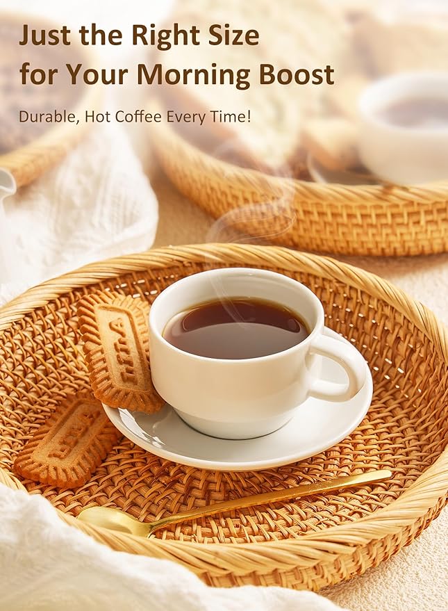 - 【Perfect 8 oz Capacity】Each cup holds 8 oz, an ideal size for cappuccinos, lattes, Americanos, or tea. Designed for everyday enjoyment, this versatile set elevates every sip at home