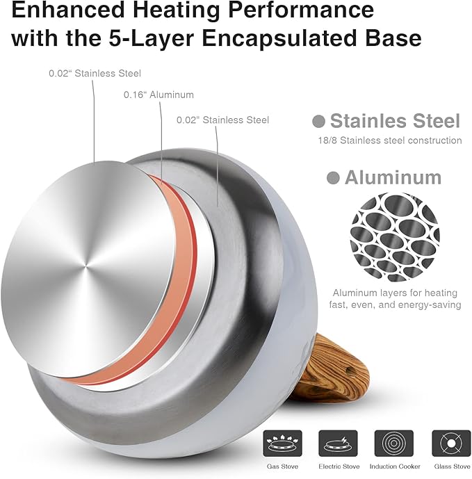 - [ Loud Whistling Sound ] Loud & automatic whistling catch your attention even in a noisy environment. When you focus on your housework, movies, music, or any other things, the teapot will remind you with a whistle after boiling water. To prevent you from forgetting to turn it off and drying the water up. (Tip: Just fill up 80% of the capacity so that the water kettle can whistle when water is boiling.)