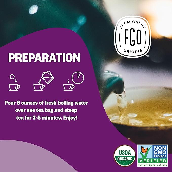 FGO Organic Tulsi Holy Basil Tea, 100 Count, Eco-Conscious Herbal Tea Bags, Resealable Bag, Caffeine Free, Packaging May Vary (Pack of 1)