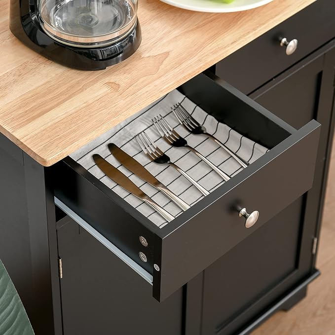 HOMCOM Sideboard with Solid Wood Countertop, Modern Kitchen Storage Cabinet, Coffee Bar Cabinet with 2 Drawers, Doors and Adjustable Shelf, Black