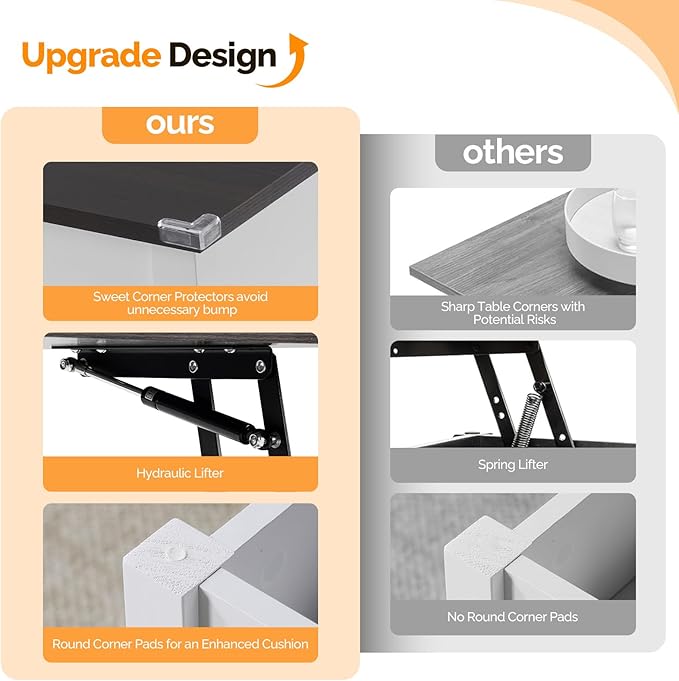 - 【Upgraded Design】 1.Shifting the spring lifter into a pre-assembled hydraulic mechanism saving stretching installation hassle of springs; 2.PVC Covers on cam connectors for a smooth look ; 3. Corner cushions for buffering;