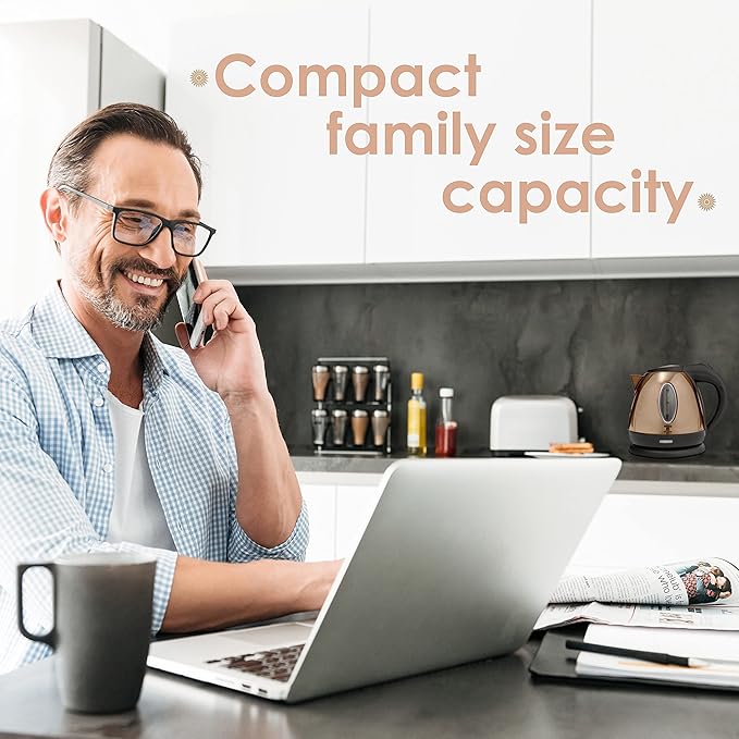 - Fast-boiling Performance: Compact 1.2L (40oz) electric water kettle with 1500W fast-boil power and built-in temperature controller. One-touch switch, 120V~60Hz. Great for tea, coffee, oatmeal, and soup