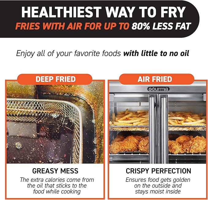 - 17-MODE, QUICK COOKING OVEN | Toast, Bake, Dehydrate, Air Fry, & More In A Fraction Of The Time With This Combo Marvel From Gourmia | Easy 1-Touch Control Panel With 17 Preset Options To Cook Your Favorite Breads, Meats, & Vegetables To Crispy Goodness