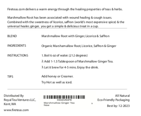 - Organic Marshmallow Root & Ginger Herbal Tea w/Saffron & Licorice