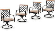 - Curved armrest design, more comfortable; outdoor metal swivel chairs 3 Steel Frame Bottom Brackets, triangle structure increases stability; Ergonomic curve smooth back design makes you enjoyable; Quality outdoor furniture creates high-quality life enjoyment