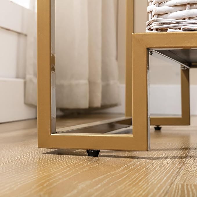 COSVALVE Glass Coffee Table, Brass Accent Modern Tempered Glass Side Table, Additional Storage Shelf & Metal Frame, for Living Room Home Classy Furniture Office Decor