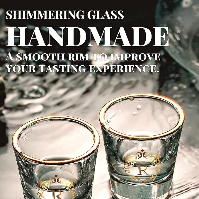 - FUN COLLECTIBLE: Give your glassware collection a little sparkle with this beautiful monogrammed gold-rimmed shot glass.