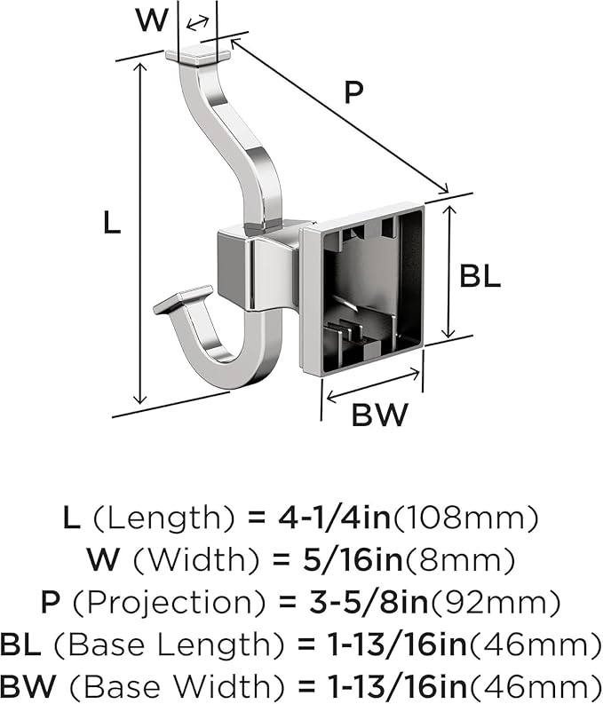 Amerock BH3602026 | Chrome Single Robe Hook | 4-1/4 in. (108 mm) Length Towel Holder | Mulholland | Towel Hook for Bathroom | Bathroom Hardware | Bath Accessories