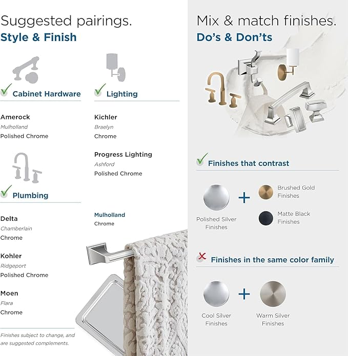 - Pair with matching cabinet knobs and pulls from the Amerock Mulholland collection for a effortless designer hardware look
