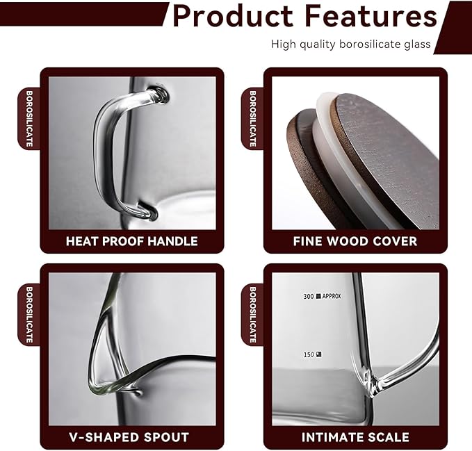 - SMALL AND CUTE: This glass coffee carafe with protruding v nozzle outlet design, the dumping is smooth. The glass coffee maker has the right size, easy to hold, better heat insulation, the glass pour over coffee pot the cup mouth is round, and not hurt finger