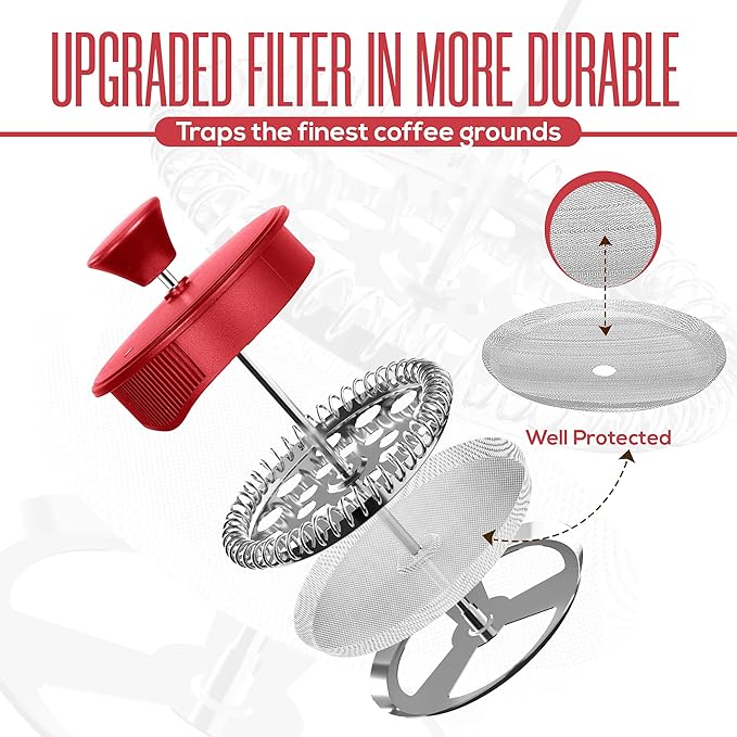 Utopia Kitchen 12 Ounce 0.35 Liter French Press Coffee Maker, Tea Maker, Travel Coffee Presses, Heat Resistant Thickened Borosilicate Coffee Pot for Camping Travel Gifts, Red Pack of 1