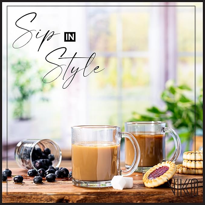 Vikko 10.75 Ounce Clear Glass Coffee Mugs - Set of 12, Microwave and Dishwasher Safe