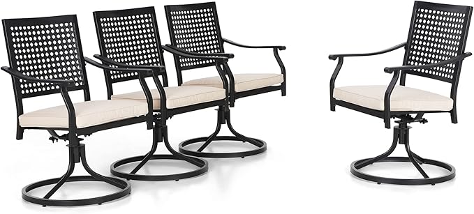PHI VILLA Patio Swivel Dining Chairs Set of 4, Outdoor Kitchen Garden Metal Chair with Cushions, Patio Furniture Chair with Armrest, Black Frame