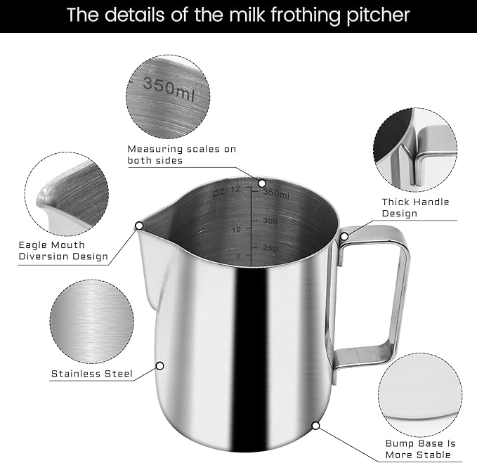 - 【51mm Tamper Set】One pack includes one 51 mm tamper, one 350 ml(11.836 oz) milk jug, 4 decorative stencils, 1 tamper mat, 1 latte art pen and 1 barista towel.