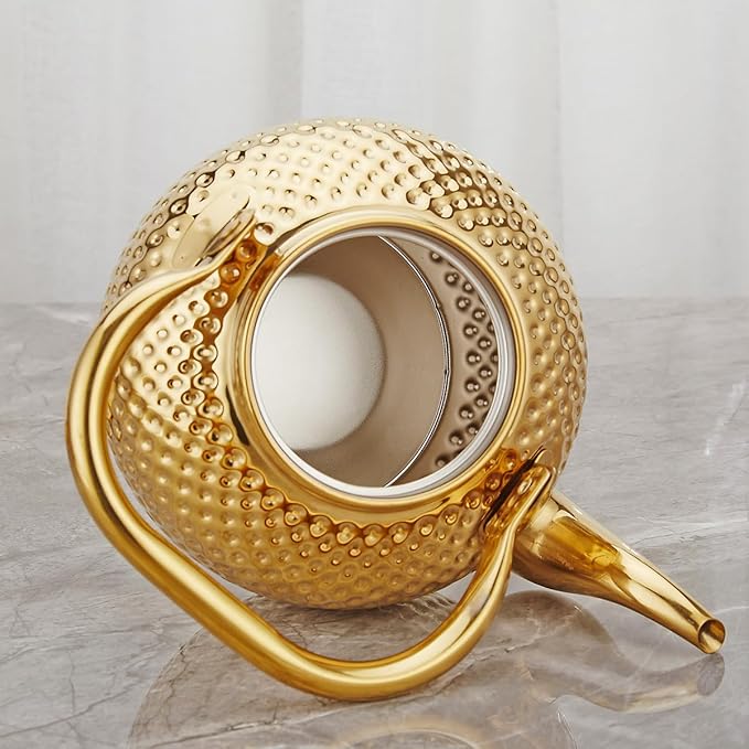 SANQIAHOME 1500ml teapot with Infuser stainless steel Water Boilers lifting handle Tea Maker Water Kettle for Induction/Gas gold
