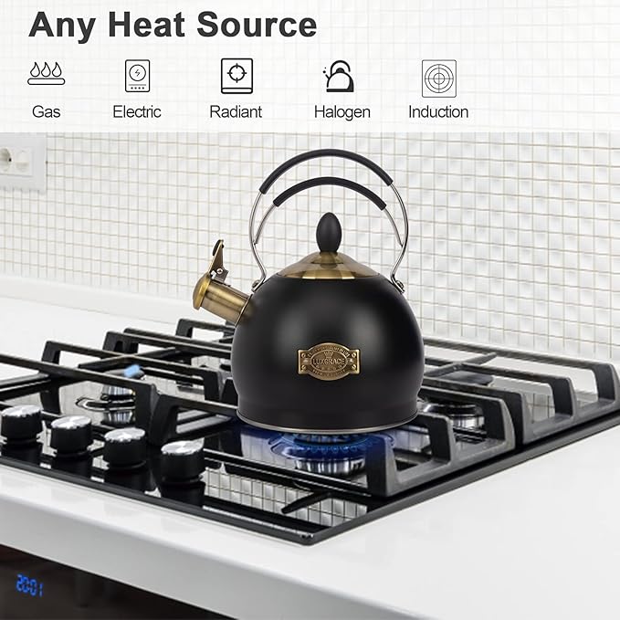 - 【Perfect Whistling Sound】The tea kettle will release a loud whistle when the water has reached a boiling point. When you focus on your housework, movies, music, or anything else, the teapot will whistle to remind you when the water is boiling and you won't miss it. (Tip: Just fill up 80% of the capacity on tea kettle so that the water kettle can whistle when water is boiling.)